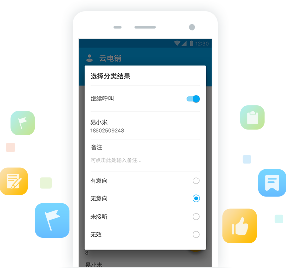 销售与客户通话结束后,可以根据通话结果对线索状态进行标记,方便销售人员后期精准跟踪。
